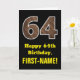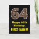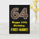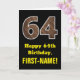 64th Birthday: Name, Faux Wood Grain Pattern "64" Card