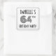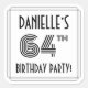 This elegant sixty-fourth birthday party square sticker design features a custom name, an intricate art deco look inspired number “64th”, the message “BIRTHDAY PARTY!”, and a border pattern consisting of lines. Stickers like these might be given out or used at a birthday party held in celebration of somebody’s sixty-fourth birthday, or perhaps used when wrapping gifts or preparing invitations for such an event. [~Z0000618]