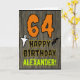 The front of this scary and spooky Halloween birthday themed greeting card design features a large number "64". It also features the message "HAPPY BIRTHDAY,", and a personalized name. There are also depictions of a bat and a ghost on the front. The inside features an editable birthday greeting message, or could perhaps be cleared and left blank if a message is to be written by hand instead. A customizable birthday card like this might be a fun way to acknowledge somebody’s sixty fourth birthday that also falls on October 31st (Halloween). [~Z0000410]