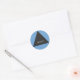 Round Zap Sticker with Black Triangle with Blue background and Roman 657 in White.