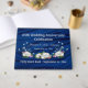 Delightful addition to your 65th wedding anniversary party, guest book is a special personal keepsake for the event. White roses, pink flowers and blue bells on sapphire blue drape with custom names and dates on front, back and spine Personalize in template provided. Check out party supplies with matching design in the Party Pack section of my studio store on Zazzle.