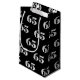 Happy 65th birthday with red, white and black balloon bouquet on black background.
