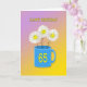 Happy smiling daisy flowers in a bright blue mug, The age 65 is in yellow on the mug. A lovely way to wish a happy 65th birthday.
