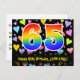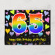 65th Birthday: Fun Hearts Pattern, Rainbow 65 Postcard