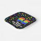 This vibrant and colorful birthday-themed paper plate design features a large number “65” with a rainbow spectrum gradient inspired pattern, along with the message “Happy 65th Birthday,”, and a personalized name. The background features an exciting and colorful pattern featuring many star shapes with different colors and sizes. Exciting paper plates like this might be fun to use at a party being held for somebody who is celebrating their 65th birthday. [~Z0000582]