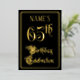 The front of this ornate and elegant foil sixty-fifth birthday celebration/party invitation design features the message “65th Birthday Celebration” in opulent script-style text. It also has an editable name. The background of the front is colored black by default (although it can be customized to a different color). The back features personalized details about the event, such as the date, time, location, and any other information that may be relevant. Opulent, fancy, editable invitations like these might be used to invite guests to a birthday party being held in celebration of somebody’s sixty-fifth birthday. [~Z0000589]