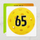Bright yellow pickleball on white for a 65th pickleball birthday party.