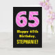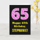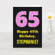 65th Birthday: Pink Stripes and Hearts "65" + Name Card