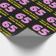 This fun and joyful birthday themed wrapping paper design features a large number "65" with a striped pattern containing heart shapes colored dark pink and light pink. It also features the birthday greeting message "Happy 65th Birthday,", and a custom recipient name. Wrapping paper like this might be used when giving a gift or present in honor of somebody’s sixty fifth birthday. It might also be a fun choice for somebody whose birthday falls on Feb. 14 (Valentine's Day), due to its loving heart symbols and colors. [~Z0000435]