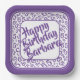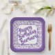 65th Birthday Random Number Pattern Purple/White Paper Plates