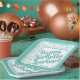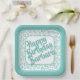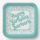 65th Birthday Random Number Pattern Teal/White Paper Plates