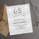 A modern, stylish and glamorous invitation for a 65th birthday party. A faux silver looking background, decorated with glitter dust. Personalize and add your name nad party details. Number 65 is written with a balloon style font, script.