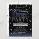 65th Blue Silver Glitter Confetti Surprise Party Invitation