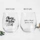 Introducing the perfect anniversary gift or party favor, our personalized stemless wine glass! Celebrate your special day with this elegant and sophisticated glass that will surely impress your loved one. This stemless wine glass is perfect for sipping on your favorite wine during a romantic evening or while reminiscing on your anniversary.