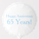 Happy Anniversary 65 Years with traditional wedding anniversary color sky blue, against white background. Personalize for any wedding year. Celebrate the special couple with balloons for vases or table tops. Love is written on back of air-filled balloons in wedding script. XO in silver outlining front and back. Helium balloons will only show the front balloon wording. Click customize to edit text to other colors, or to change background color. Original Design © TamiraZDesigns.