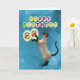 A playful siamese cat chasing balloons. A great way for a cat lover to send a birthday card.