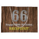 This American Old West look and country look birthday themed gift bag design features a large rustic look number "66", the message "Happy 66th Birthday,", an editable name, and a faux/imitation wood grain inspired look pattern background. A customizable birthday gift bag like this might be fun to use when wrapping gifts or presents being given in celebration somebody’s sixty-sixth birthday. [~Z0000470]