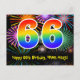 66th Birthday – Fun Fireworks Pattern + Rainbow 66 Postcard