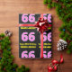 This fun and joyful birthday-themed wrapping paper design features a large number "66" having a light pink and dark pink striped pattern containing heart shapes. It also features the birthday greeting message "Happy 66th Birthday,", and a customizable recipient name. Fun wrapping paper like this might be used when wrapping presents being given to somebody in celebration of their 66th birthday. It might also be a fun choice for somebody who has a birthday that falls on Valentine's Day (Feb. 14th), due to its loving heart symbols and colors. [~Z0000435]