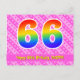 66th Birthday: Pink Stripes & Hearts, Rainbow 66 Postcard