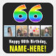 66th Birthday: Rainbow “66”; Custom Photos & Name Square Sticker