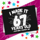 This funny 67th birthday design makes a great sarcastic humor joke or novelty gag gift for a 67 year old birthday theme or surprise 67th birthday party! Features 'I Made it to 67 Years Old...Nothing Scares Me' funny 67th birthday meme that will get lots of laughs from family, friends, party guests & the birthday guy or girl too!