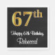 This elegant, luxurious, and stylish birthday themed paper napkin design features a large ordinal number “67th” having an imitation/faux gold-like gradient pattern, plus the birthday greeting message “Happy 67th Birthday,” and a customizable name in a script-style font. It also has a black-colored background. Stylish paper napkins like this might be used when hosting a birthday party for somebody in celebration of their sixty seventh birthday. [~Z0000516]