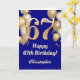 67th Birthday Navy Blue and Gold Balloons Confetti Card