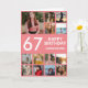 67th Birthday Photo Collage 13 Photos Pink & White Card