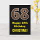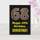 68th Birthday: Name, Faux Wood Grain Pattern "68" Card