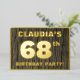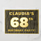 The front of this bold sixty-eighth birthday party foil invitation card features an editable name, a large number “68th”, the message “BIRTHDAY PARTY!”, and a border, all in foil. There is a rustic, yet elegant, faux wood grain look inspired pattern for the background of the front. The back features personalized details about the event, such as the date, time, place/venue, and any other information that may be important. Editable invitations like these might be used to invite guests/attendees to a birthday gathering being held to honor somebody’s 68th birthday. [~Z0000598]