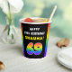 This fun and upbeat birthday-themed paper cup design features the number “69“ having a vibrant multicolored rainbow spectrum inspired gradient pattern, along with the message “HAPPY 69th BIRTHDAY,”, and an editable recipient name. Paper cups like this might be used at a party for somebody who is celebrating their sixty ninth birthday. [~Z0000639]