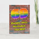 This exciting and vibrant urban graffiti and street art inspired birthday greeting card design features a large number “69” having a multicolored rainbow spectrum gradient inspired pattern. It also features the message “Happy 69th Birthday,”, and an editable name. The background of the front has a brick wall pattern. The inside features a customizable birthday greeting message, or could perhaps be cleared and left blank if a message is to be written by hand instead. A vibrant, customizable birthday greeting card like this might be used to celebrate somebody’s sixty-ninth birthday. [~Z0000586]