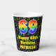 This cheerful and exciting music-themed birthday paper cup design features a large number “69” having a rainbow spectrum gradient inspired pattern. It also features the message “Happy 69th Birthday,”, and a personalized name. The background features a multicolored pattern of various music notes and symbols having a variety of sizes and colors. Colorful, vibrant paper cups like this might be fun to use at a birthday party being held in celebration of somebody’s 69th birthday. [~Z0000541]