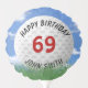 White golf ball in grass with blue sky and cloud background for 69th birthday