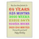 69th birthday card counting down the years, days, months, hours, and minutes. A card to give pause for thought! Leap years have been taken into account!