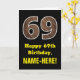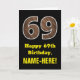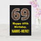69th Birthday: Name, Faux Wood Grain Pattern "69" Card