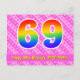 69th Birthday: Pink Stripes & Hearts, Rainbow 69 Postcard