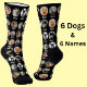 Add 6 Dogs with 6 Names, on these black personalized Dog Photo Socks - see them in other colors in my store.