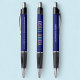Personalize our pen with your business logo, tagline, website, company address, or other custom text. It's a ballpoint pen with black ink and a rubber grip. Designed in dark blue and other colors (all colors are customizable). Made in USA. Small quantity order (six minimum) and no setup fee.