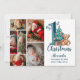 6 Photo Blue Teddy Baby 1st Christmas Holiday Card