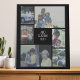 6 photos in an uneven pattern surround an opening for three lines of text. Use 2 square cropped photos and 4 vertical photos to make this work!