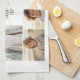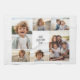 6 photos in an uneven pattern surround an opening for three lines of text. Use 2 vertical cropped photos and 4 horizontal photos to make this work!
