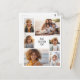 6 photos in an uneven pattern surround an opening for three lines of text. Use 2 square cropped photos and 4 vertical photos to make this work!