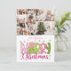 6 Photo Pink Green Bow Tree Merry Christmas Holiday Card