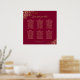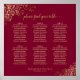 Transform your wedding reception with this exquisite seating chart, enhancing its beauty and sophistication. It showcases a simple yet elegant design in gold and maroon or burgundy wine red, featuring a script calligraphy title and delicate golden faux foil lace frills on the corners. With room for up to 60 names at 6 tables seating 10 guests each, your names and wedding date will be displayed below, ensuring that your guests can effortlessly locate their seats. Embrace this opportunity to add a touch of glamor and ease to your special day.