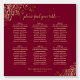 This beautiful seating chart will add style, class, and elegance to your wedding reception. It features a simple gold and maroon or burgundy wine red design with a script calligraphy title and fancy golden faux foil lace frills in the corners. There is space for 60 names at 6 tables with the traditional 10 seats per table. Your names and the wedding date appear below. Perfect way to make it easy for your guests to find their seats.