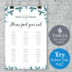 Eucalyptus Greenery Border Seating Chart with 6 tables. This style is also available for larger events with 8 tables, 9 tables, 10 tables, 12 tables, 15 tables, 16, tables and 18 tables. Please see my Zazzle store for the full collection.