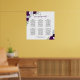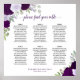 This beautiful wedding seating chart showcases a charming rustic watercolor design adorned with roses and flowers in shades of dusty purple, lavender, and plum, complemented by delicate eucalyptus leaves and lush greenery. The elegant calligraphy title reads "please find your table," and is accompanied by the couple's names and wedding date at the bottom. With room for 60 guests (10 seats per table), this seating chart ensures effortless table navigation for your guests, while adding an atmosphere of refinement, beauty, and sophistication to your wedding reception.