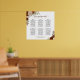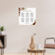 This 6 table wedding seating chart features a beautiful hand painted watercolor design with roses, flowers, and autumn foliage in shades of rust orange, coral peach, and burnt umber. It has space for 60 guests with 10 seats at each table, with an elegant script calligraphy title, and space for the names of the couple and wedding date below. Wonderful way to add a touch of boho chic fall colors to your wedding reception while making it easy for your guests to find their seats.